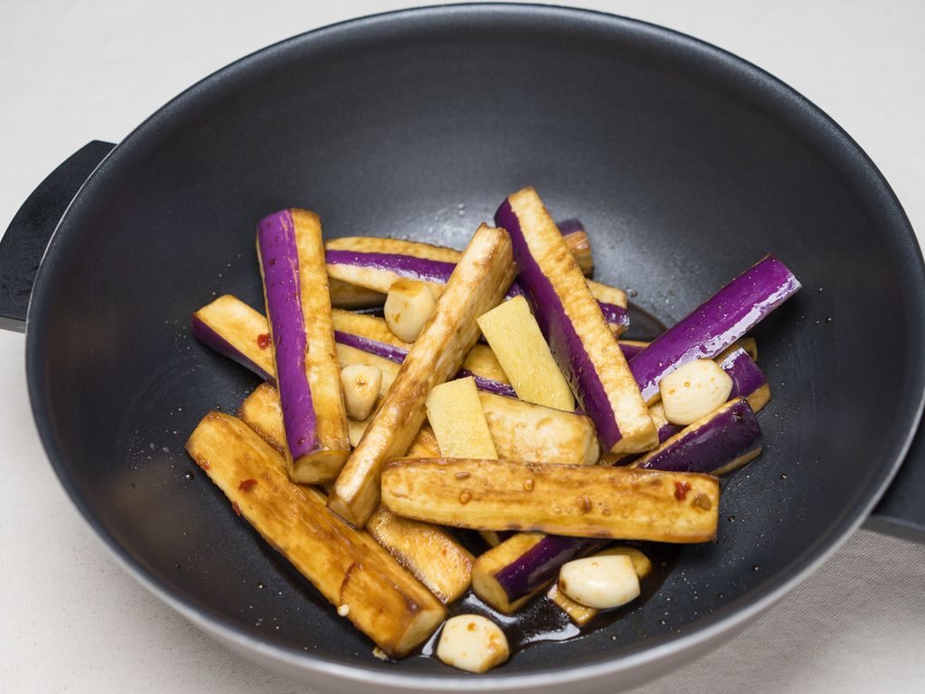 茄子的魅力就在于怎么做都好吃,肉末里混了一点儿虾酱——只是一点点,它一定是和米饭同归于尽的那个。现在健康饮食,提倡食用紫色食品,如茄子、紫甘蓝、紫薯、紫米等等,因为紫色的果蔬中含有特别的物质——花青素。它有很强的抗氧化能力,是预防高血压、减轻动脉硬化、延缓人体衰老的好食品。所以饮食中,我们要品种多样、颜色多彩、健康饮食。