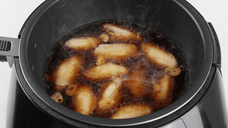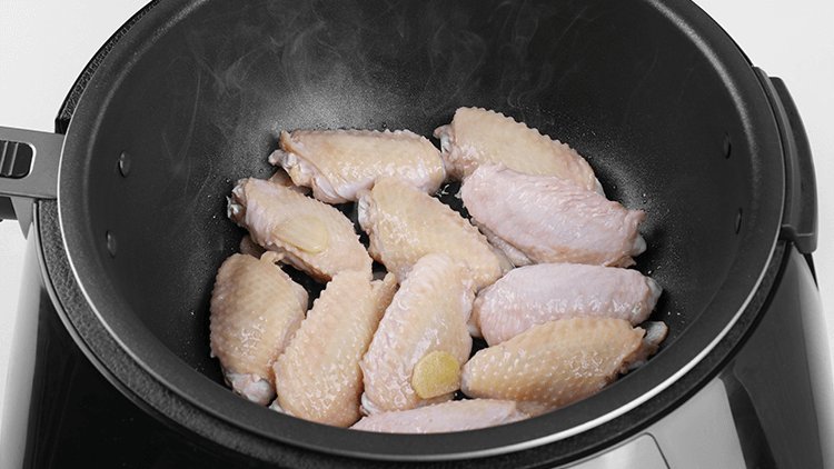 1、放入鸡翅,小火煎至表面金黄