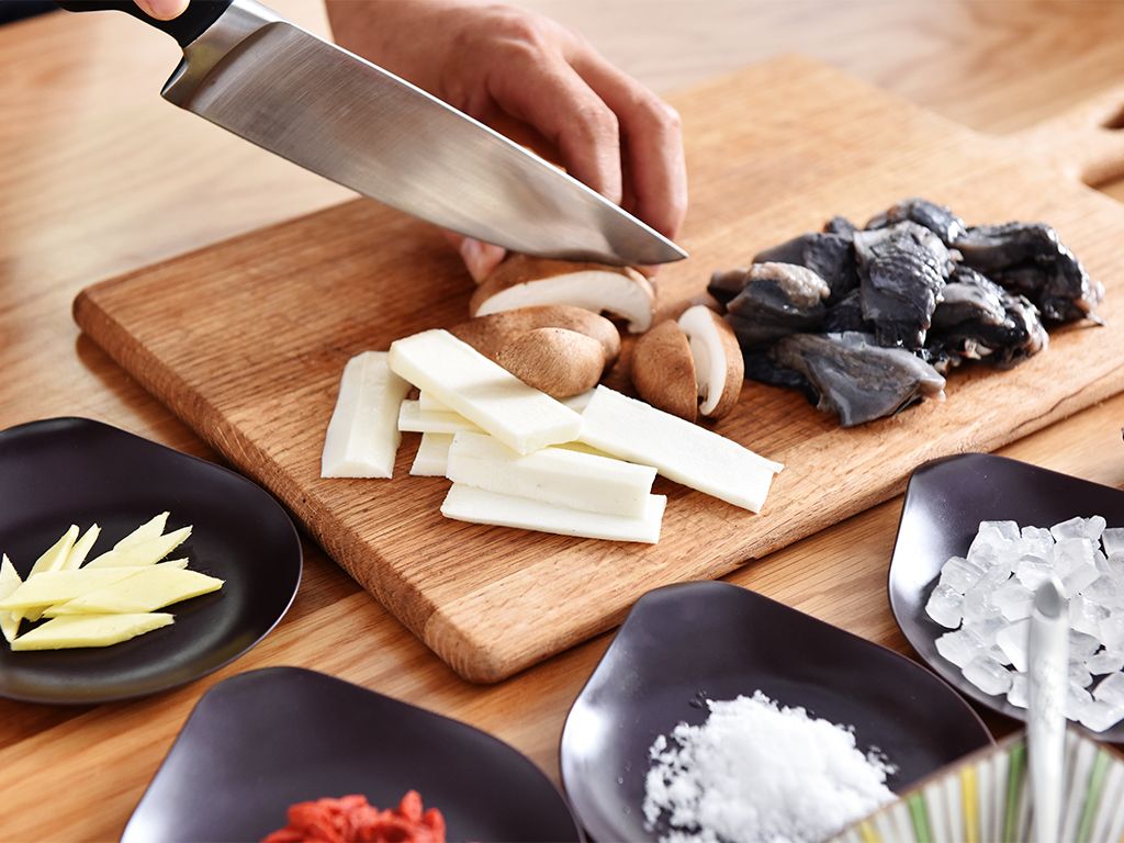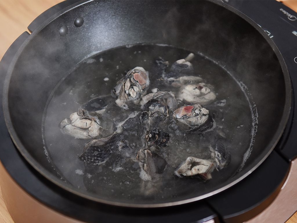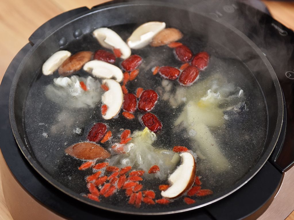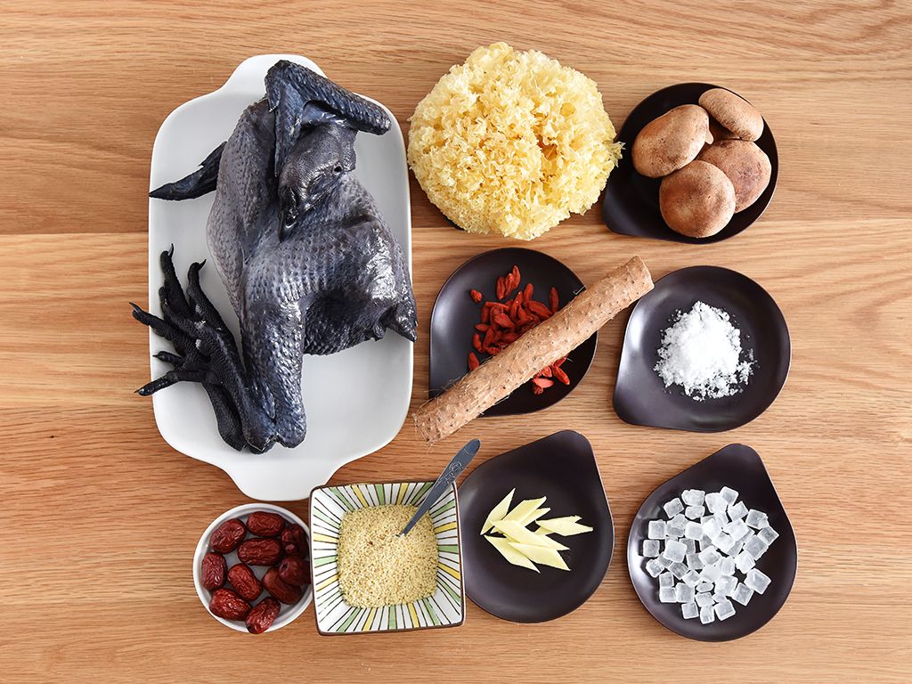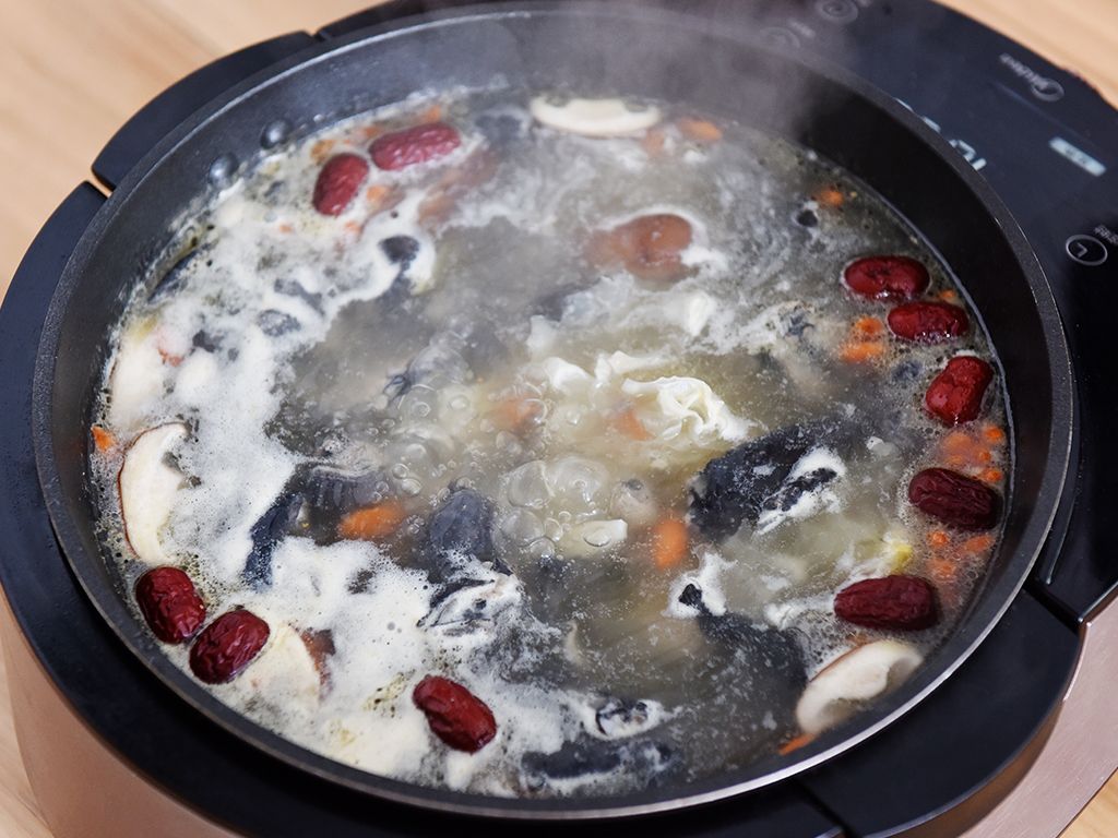 将鸡切块过水,银耳泡发撕碎,淮山去皮切块,香菇泡发切半。