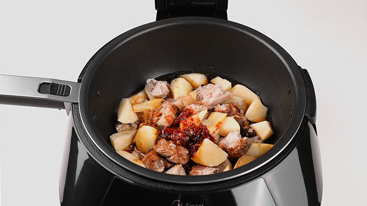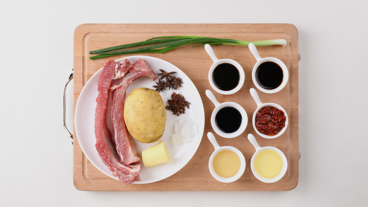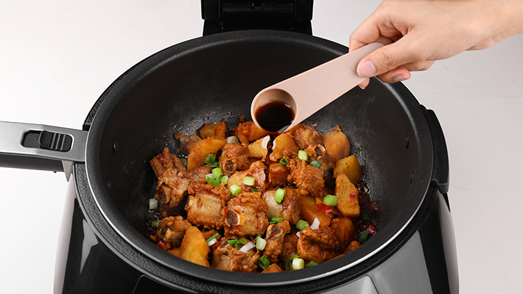 将排骨和其它原料(除醋、葱花)加入锅中,启动程序。