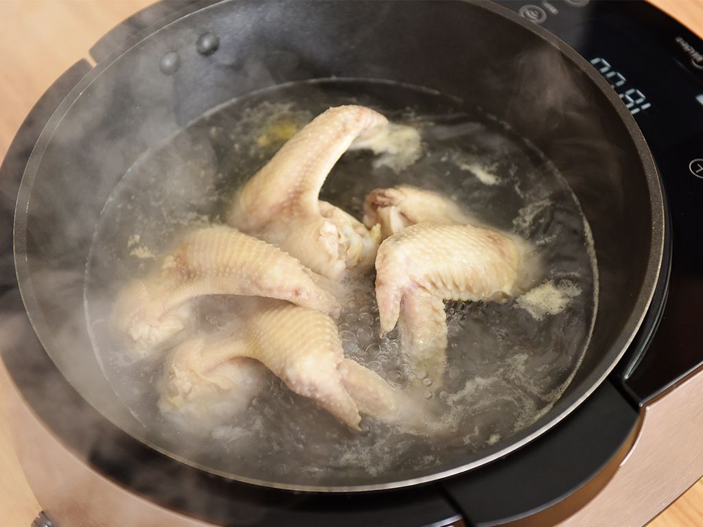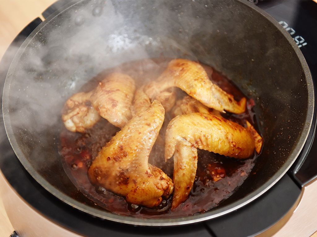 烹调翅膀肉时,应以慢火烧煮,才能发出香浓的味道,而成胶原等有效的成分,也必须以长时间烧煮才可溶化
