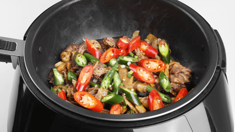 1、加入红椒、青椒、适量盐,合盖收汁到浓稠。 2、加入陈醋 、葱花拌匀出锅。
