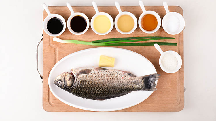 1、在鱼身上打上花刀,抹上薄薄的一层盐,一来可以更好入味,二来不容易粘锅,但是需要注意的是一点点盐,因为后来要放酱油,不然会太咸;