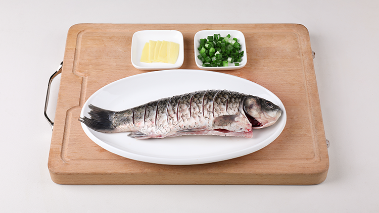 将鲫鱼去内脏去鳃去鳞,表面斜切刀,葱切葱花,生姜切片。